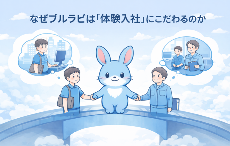 はじめに|「続かない」は、誰のせいでもない 仕事選びで、こんな経験はありませんか。 ・入社してみたら、思っていた仕事と違った ・人間関係が合わず、毎日が苦しくなった ・条件は良かったのに、なぜか続かなかった 一方で、企業 … 続きを読む なぜブルラビは「体験入社」にこだわるのか